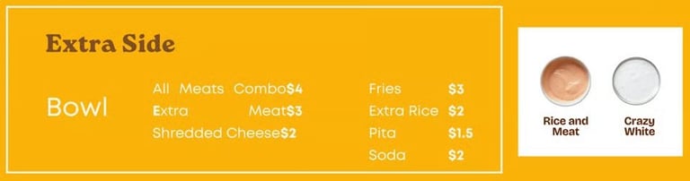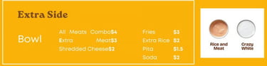 Basmati Rice is loaded with ground beef and your choice of favorite toppings and sauces.