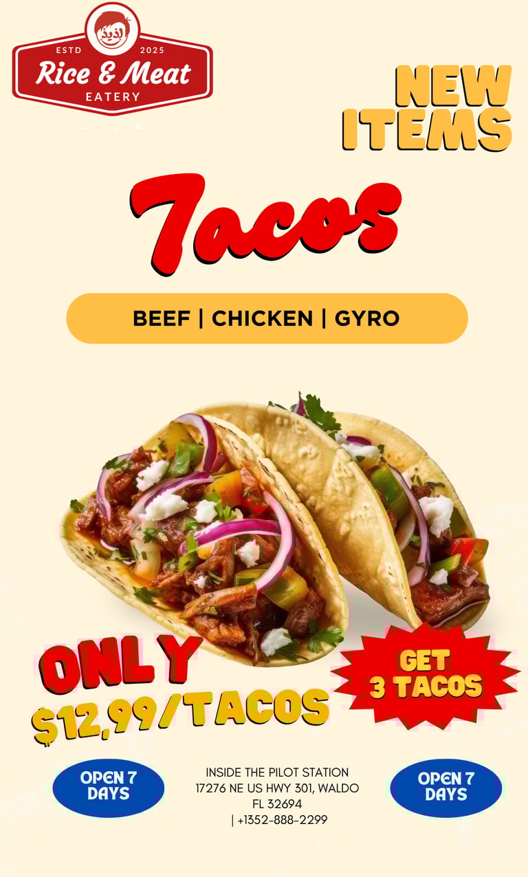 Savor our delicious rice with chicken, lamb gyro, and ground beef made with fresh ingredients daily.